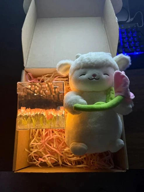 SAVE S/. 23PELUCHE CORDERITO TULIPAN + LAMPARA DE TULIPANES